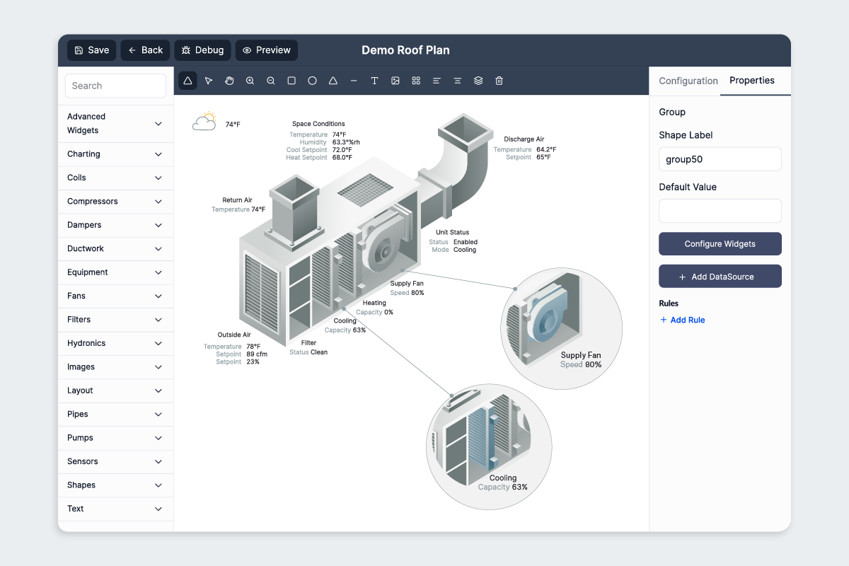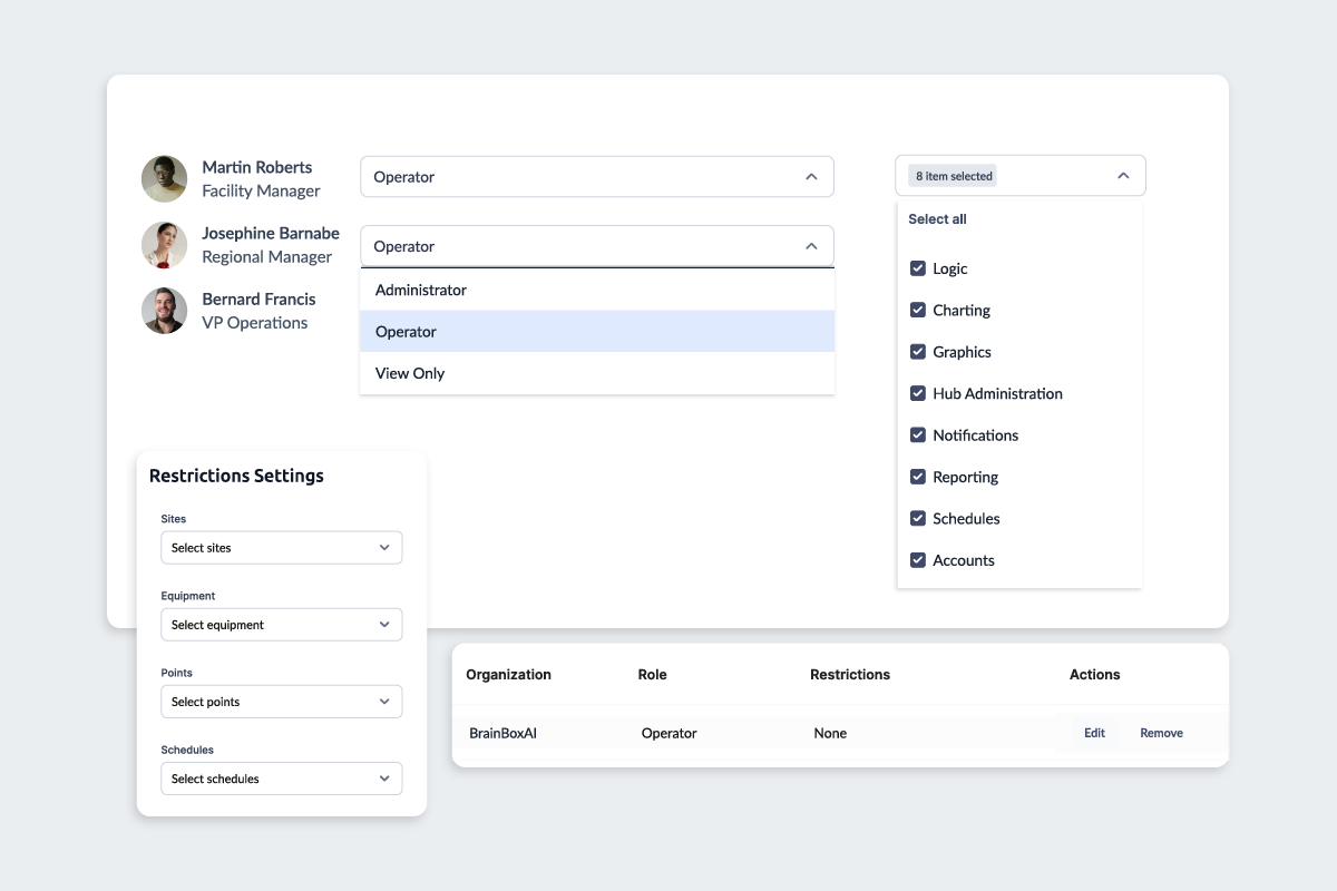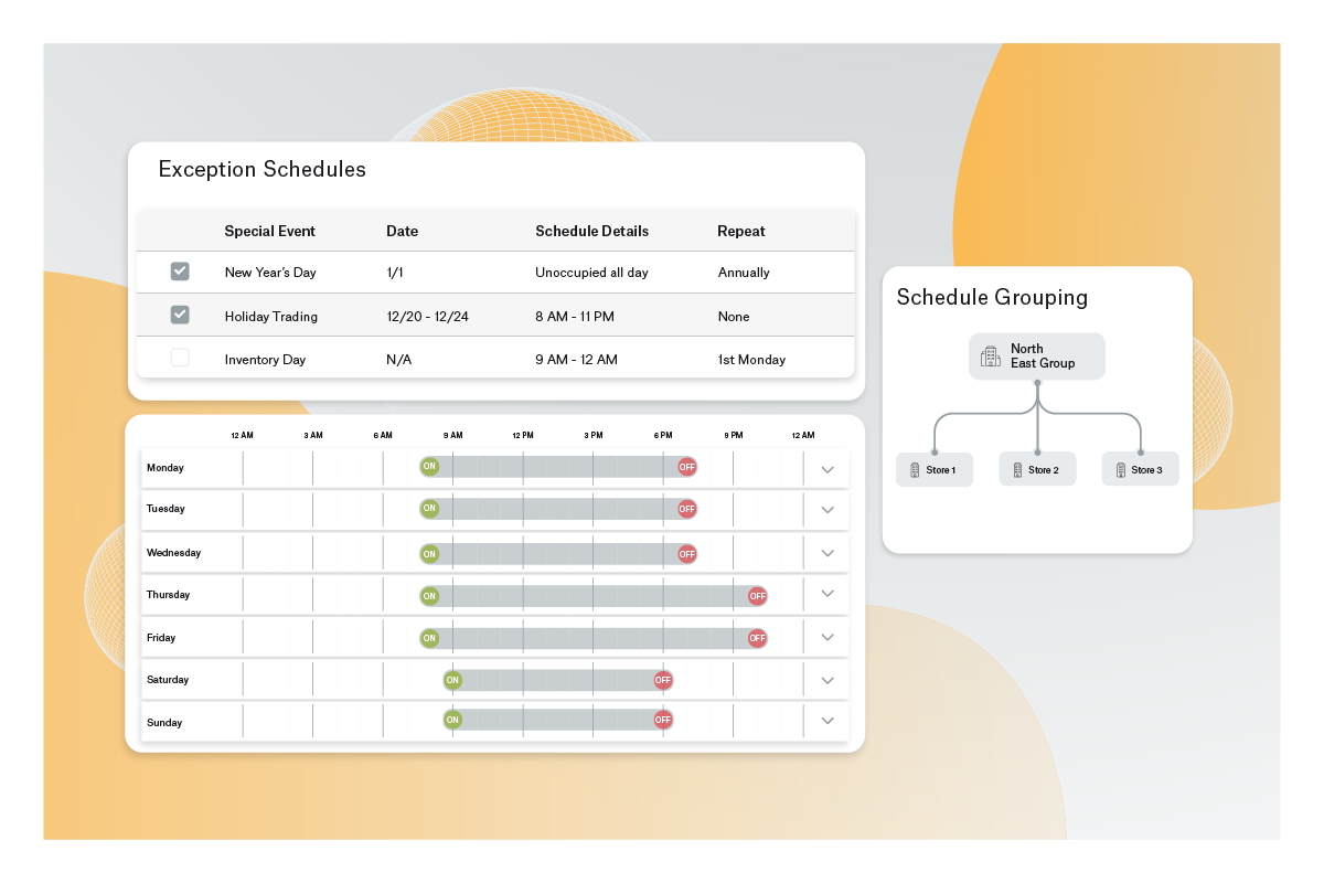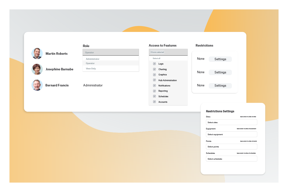 Configurez vos points de consigne, automatisez les flux de travail et organisez vos horaires d’occupation pour optimiser vos systèmes à votre façon.
