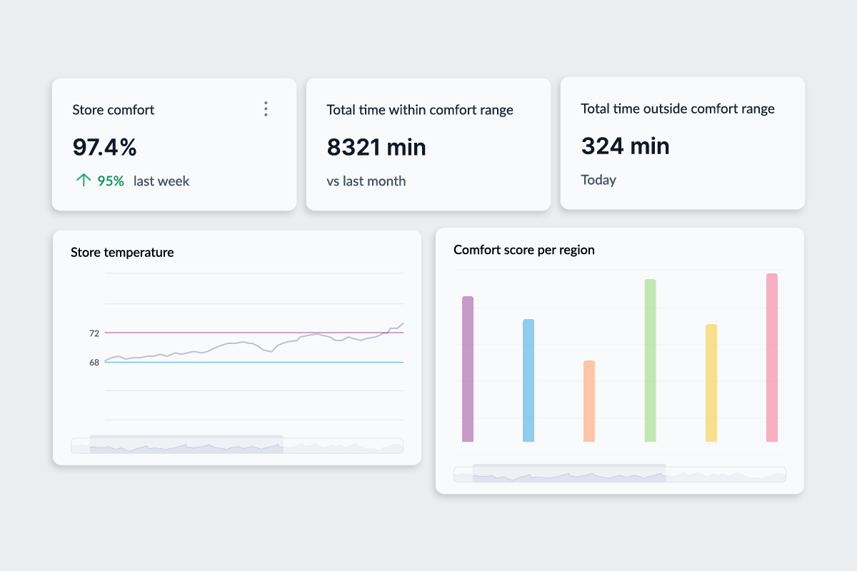 Visualisez les principales mesures de performance de l'ensemble de votre portefeuille de bâtiments à l'aide de rapports personnalisés.